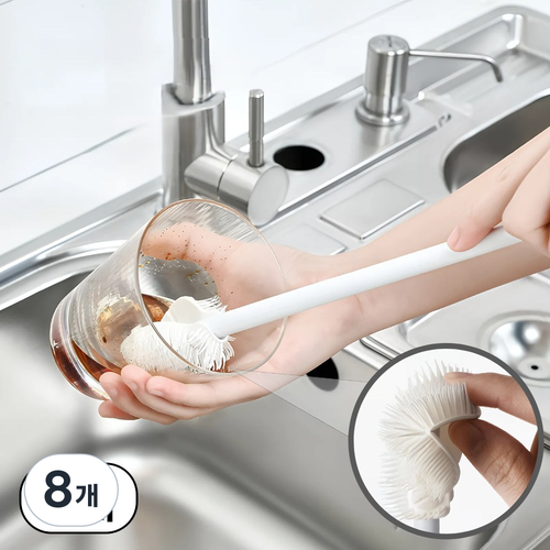코지드 긴 컵 텀블러 물병 세척솔, 8개, 화이트