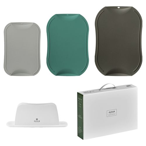 도블레 칼집나지 않는 도마 라이트그레이 소 + 도마 세이지그린 중 + 도마 차콜 대 + 도마 거치대 + 선물박스 세트, 1세트, 5종