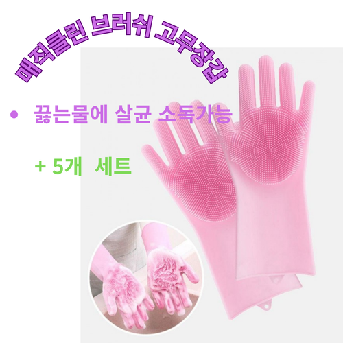 [쉬즈앤] 매직클린 실리콘 브러쉬 고무장갑 5개세트/ 항균 니트릴사용으로 주부습진예방 / 끓는물 살균 주방 청소용 설거지 다용도 장갑, 1개