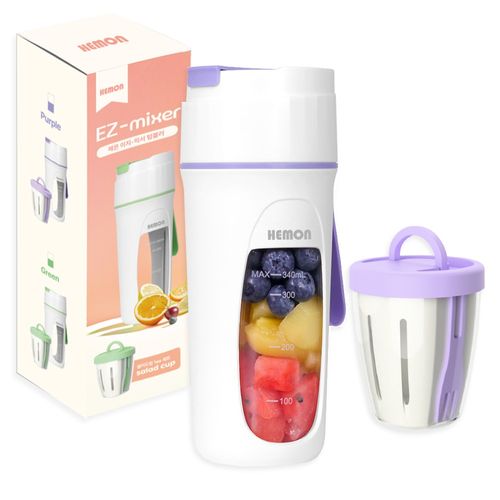 헤이즈 이지믹서+후르츠팟 세트 휴대용 믹서기 미니 초고속 블렌더 무선 충전식 소형 쉐이커, 퍼플