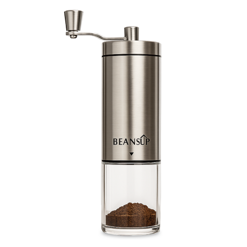 빈스업 휴대용 미니 수동 원두 분쇄기 핸드 그라인더 드립 커피밀 에스프레소 캠핑용, 1개, 실버, 30ml