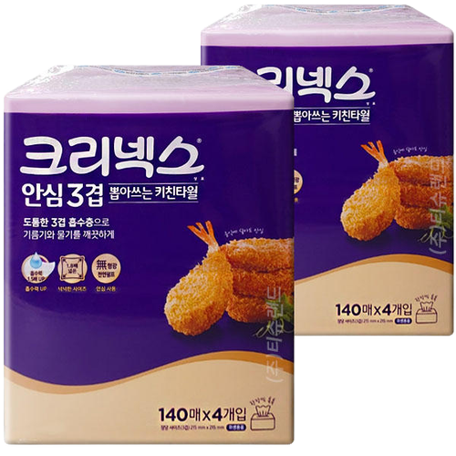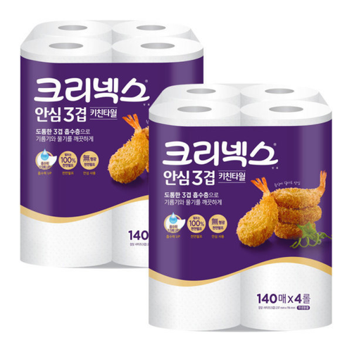 크리넥스 뽑아쓰는 키친타월 140매 4입 x 2팩 안심3겹