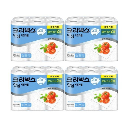 크리넥스 안심 키친타올 2겹 120매 4+2롤 x4팩, 6롤, 4개