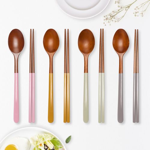 라온누리 옻칠 자연애 우드 수저 4벌 세트, 라이트핑크 + 머스타드 + 올리브그린 + 그레이, 숟가락 4p + 젓가락 4p, 1세트