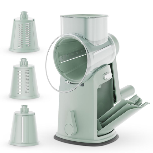EVOKME 수납형 멀티 야채슬라이서 3in1 다용도 회전채칼 세트 당근 채써는기계 오이채썰기 감자 롤슬라이스 수동 대용량 가정용, 1세트, 그린