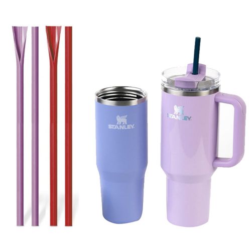 텀블러용 실리콘 롱빨대 30cm 개별포장 스탠리 스타벅스 호환용 빨대 퍼플+레드, 2개, 1세트