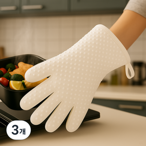 좋은픽 화상 방지 실리콘 주방 장갑, 3개, 아이보리
