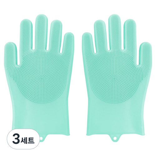 월드크린 다목적 실리콘 수세미 장갑 민트 양손착용 세트, 3세트