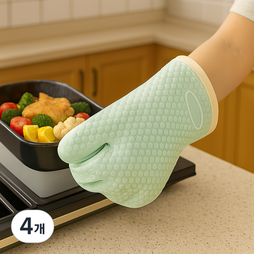 좋은픽 화상 방지 실리콘 주방 장갑, 4개, 민트