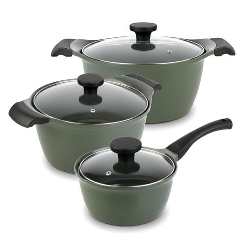 [국산] 5중 세라믹 코팅 인덕션 냄비 IH 카키 그린, 세트(18편수+20양수+24양수)