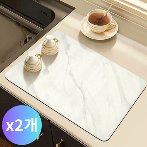마마마켓 흡수빠른 식기건조 매트, 2개, 화이트