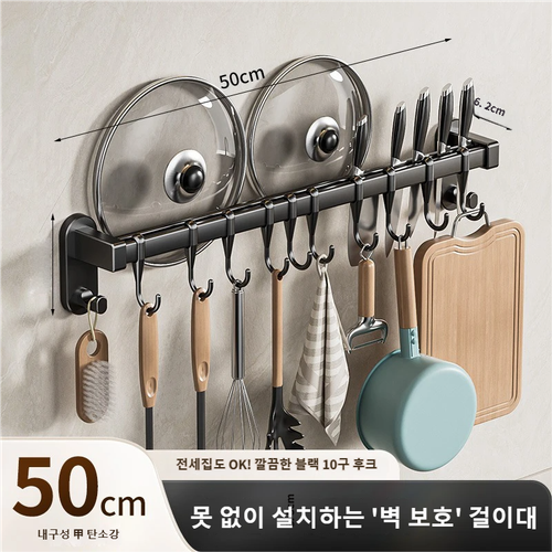 무타공 주방 걸이대 다용도 조리도구 정리 수납 랙, 1개, 블랙