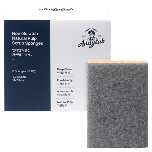 앤디랩 무흠집 자연펄프 양면 수세미, 1개, 6개입
