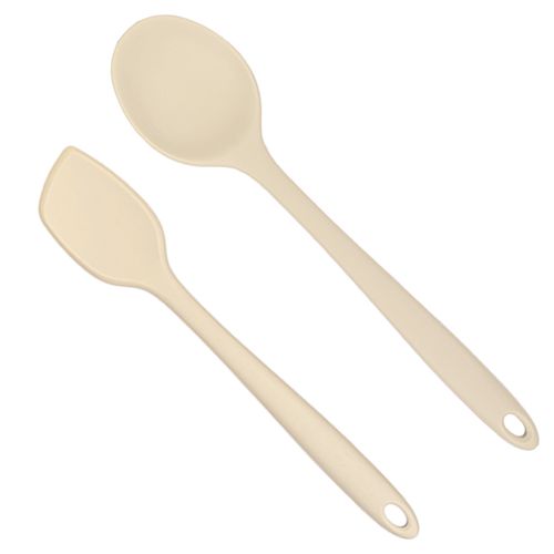 모모빈 실리콘 이유식 조리도구 스파츌라 + 멀티스푼 요리스푼 미니 볶음주걱, 크림 브륄레, 1세트, 스파츌라 S + 멀티스푼 L