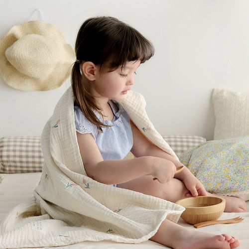 쁘리엘르 튤립 자수 삼중 거즈 블랭킷 소형, 피치