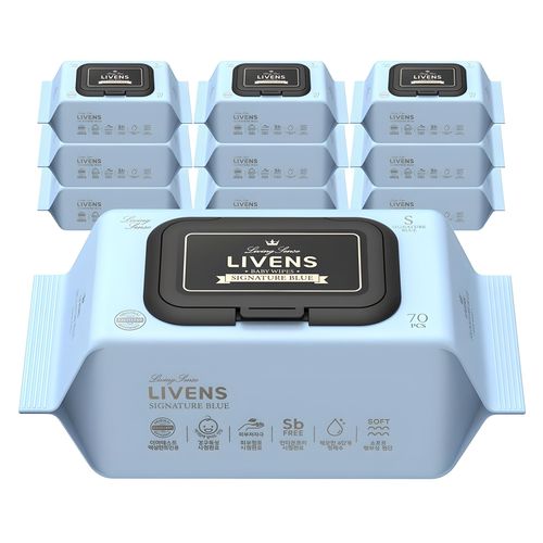 리벤스 유아용 시그니처 블루 도톰한 엠보싱 물티슈 캡형, 75g, 70매, 10개