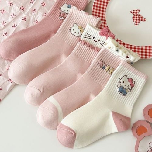 산리오 아동 여아 사계절 중목 양말 5켤레 세트