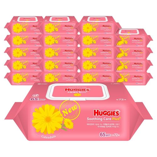 하기스 수딩케어 플러스 아기물티슈 캡형, 65g, 72매, 20개