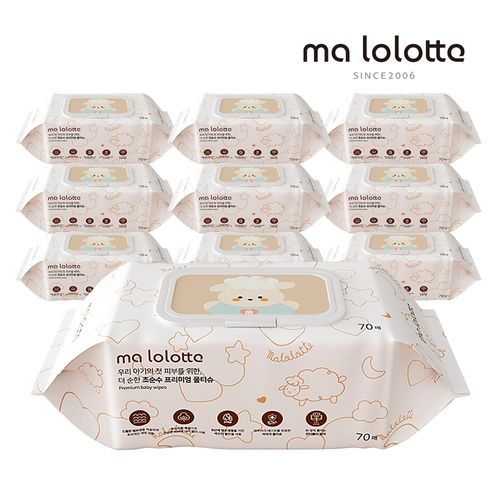 마롤로뜨 프리미엄 두꺼운 아기물티슈 73gsm 캡형 도톰한 엠보싱 유아 신생아, 10개, 70매, 73g