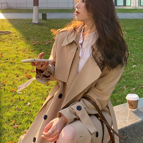 [해외배송]트렌치코트 여성 봄 가을 2025년 신상 유행 중간 길이 영국풍 고급스러운 분위기 코트