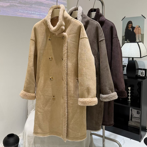 겨울 신상 스웨이드 라이크 퍼 일체형 여성 숏 퍼 코트 디자인 감각 심플 패션