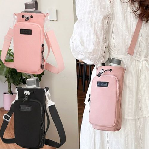 비플로 텀블러가방 크로스백 물병 파우치, 다크블랙+베이비핑크, 1개