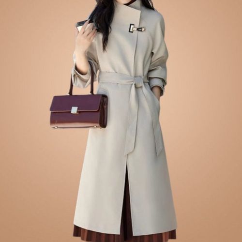 고급 트렌치코트 여성용 중간 길이 2025 신품 봄과 가을 기질 영국식 스탠드업 칼라
