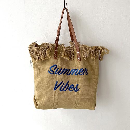네모엔룩 여성용 빈티지수술 레터링자수 프린지장식 햄프사 짜임 바캉스 피크닉 여름 숄더백 가방 NL