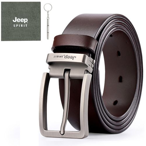 JEEPSPIRIT 캐주얼 천연 소가죽 벨트 + 지프전용케이스 세트