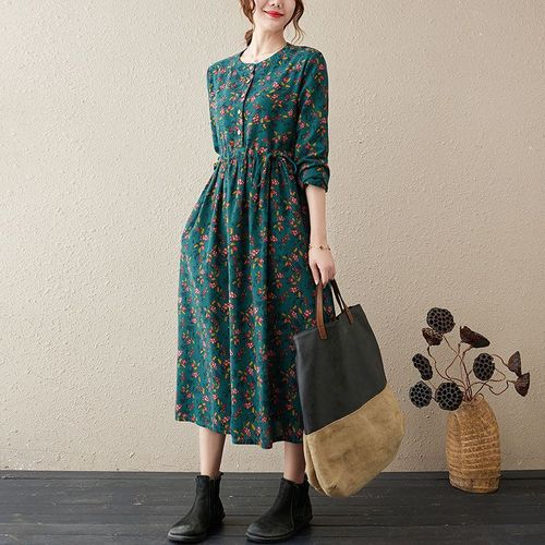 COSYEVNO 봄 가을 허리 조임 셔츠 스커트 미디 루즈핏 면 린넨 긴팔 원피스