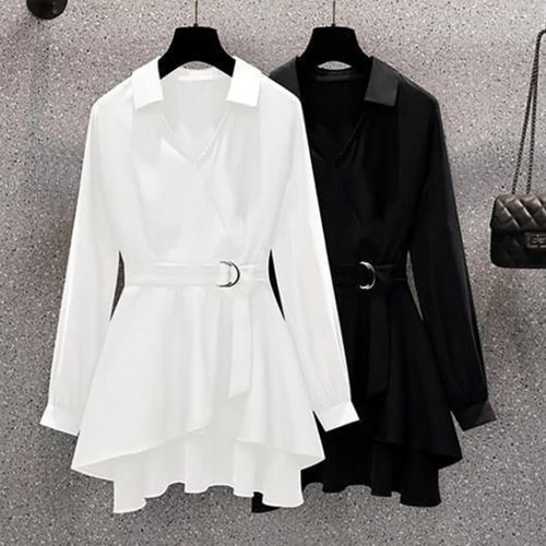 지고다그 1+1 빅사이즈 여성용 봄 신상 V넥 허리핏 긴팔 블라우스 원피스 스타일 상의 ZK7465