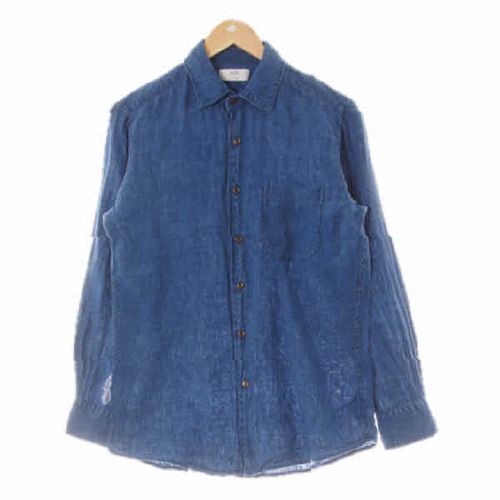 9491 유니클로 블루 린넨 워싱원포켓사이드플리츠셔츠 [S]