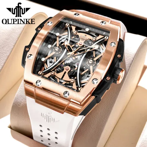 OUPINKE 3215 남성용 시계 고급 속이 빈 토노 다이얼 방수 실리콘 스포츠 크로노그래프 HD 오토매틱 기계식