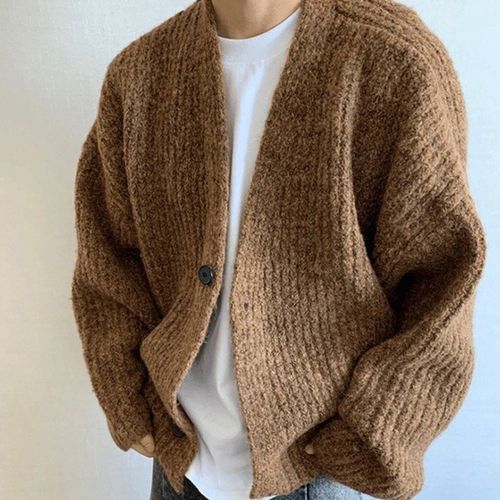 COSYEVNO 남성 가디건 겨울 빈티지 오버핏 스웨터 코트 CS1644