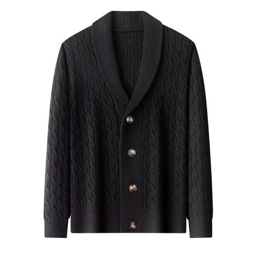 Luspirez 남성 가을 겨울 캐주얼 꽈배기 니트 가디건 숄카라 스웨터