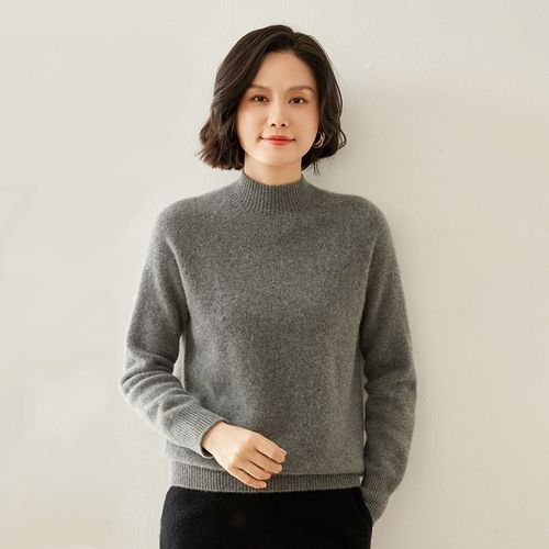 여성 고급니트 캐시미어울 반목폴라 데일리 라운드넥 스웨터