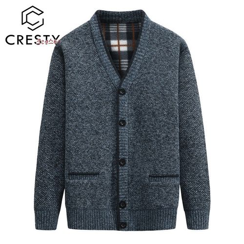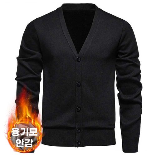 크레스티 중년 아빠 브이넥 기모 니트 기본 주머니 가디건