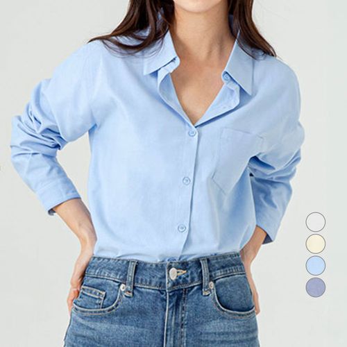 베이직하우스 남녀공용 코튼 세미오버핏 포플린 긴팔셔츠 LZWS0102