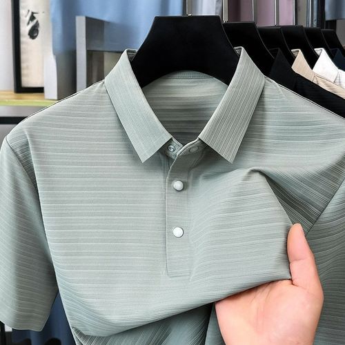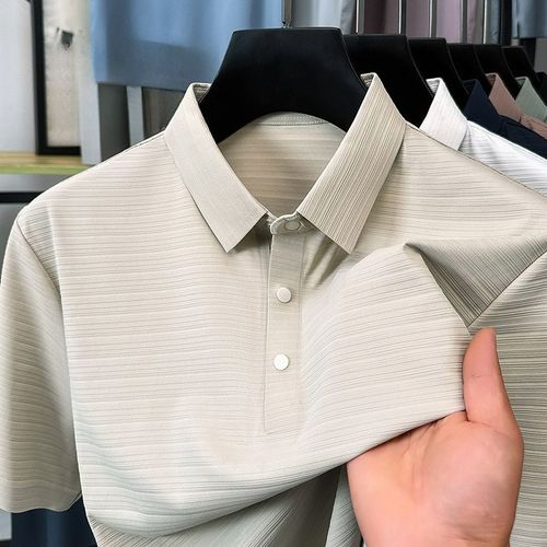 여름 라펠 반팔 남성 주름 방지 무다리 캐주얼 티셔츠 아이스 실크 슬림핏 상의