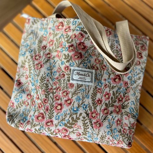 무스앤코 플라워 지퍼 에코백 가벼운 린넨 숄더백 캔버스 토트백