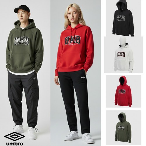 [백화점출고] 엄브로 후드티 남자 여성 기모 아플리케 후드 티셔츠 모자티 후디 긴팔