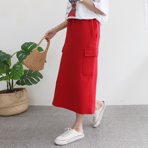 마이쏭 여성 빅사이즈 무지 롱 포켓 밴딩 캐주얼건빵롱스커트
