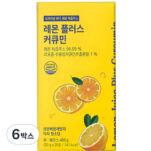 레몬 플러스 커큐민 의사가만든 레몬즙 오리지널 NFC 레몬 착즙주스 커큐민 물타지 않은 레몬즙 리포좀커큐민 미국 소비자 선정 건강 기능 성분 1위 커큐민, 6박스, 20회분