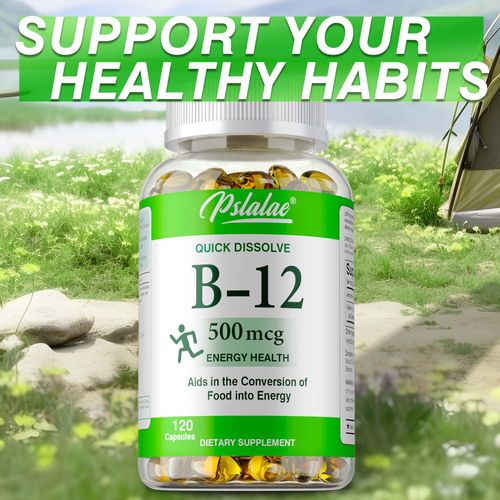 유기농 스피룰리나가 함유된 비타민 B12 캡슐 500mcg 메틸 B12는 건강한 기분, 에너지, 심장 및 눈 건강을 지원합니다., 3개, 120정