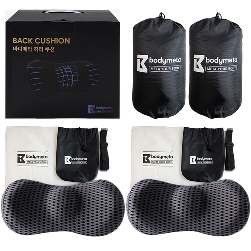 바디메타 요추 전만 메모리폼 허리쿠션 사무용 의자 등받이 차량용 쿠션 1+1, 블랙+블랙