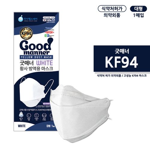 굿매너 KF94 마스크 미세먼지 황사 방역 대형 입체형 비말차단 (화이트) 50매 100매