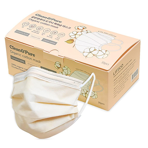 클린앤퓨어 오가닉 목화솜 마스크 대형, 30개입, 1개, 덴탈 베이지_대형
