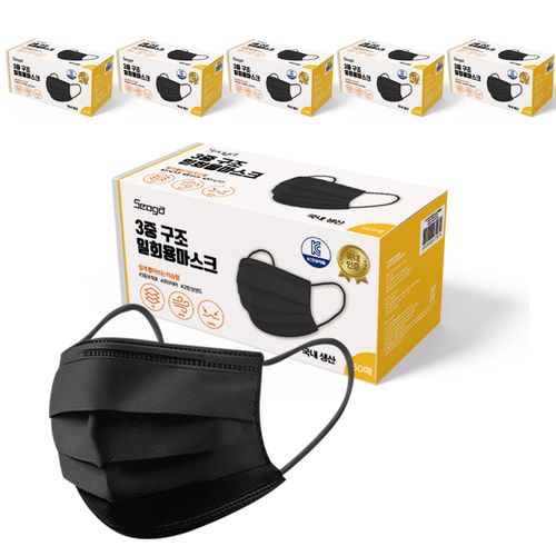서가 3중 구조 일회용 마스크 대형, 50개입, 6개, 블랙