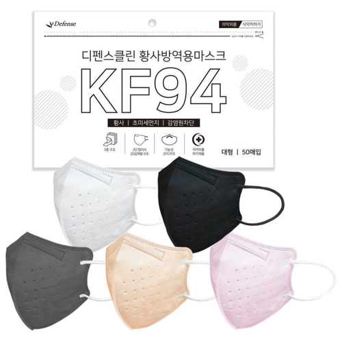 디펜스클린 국산 KF94 새부리형 마스크 100매 대형 컬러
