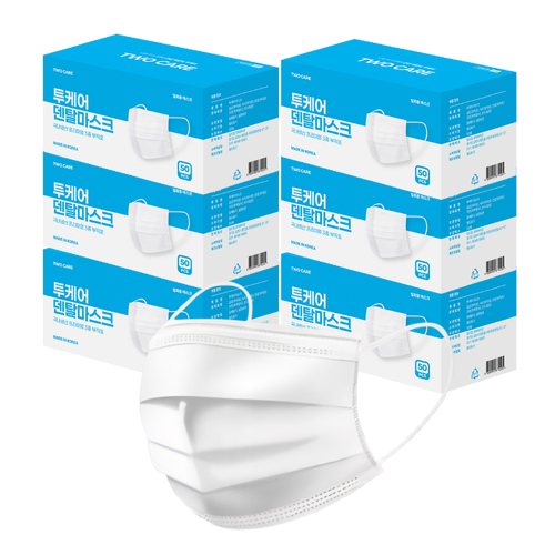 투케어 국산 숨편한 일회용 덴탈마스크 위생마스크 귀편한 대형, 화이트, 6개, 50매입